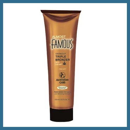 2 LOT 8.5oz BOTTLES of new Australian Gold ALMOST FAMOUS TRIPLE BRONZER. Triple Bronzer formula with Hemp. Anti-aging and slimming Blend. Instantaneous dark color. Plus DHA. Fabulous lotion! Great fragrance!